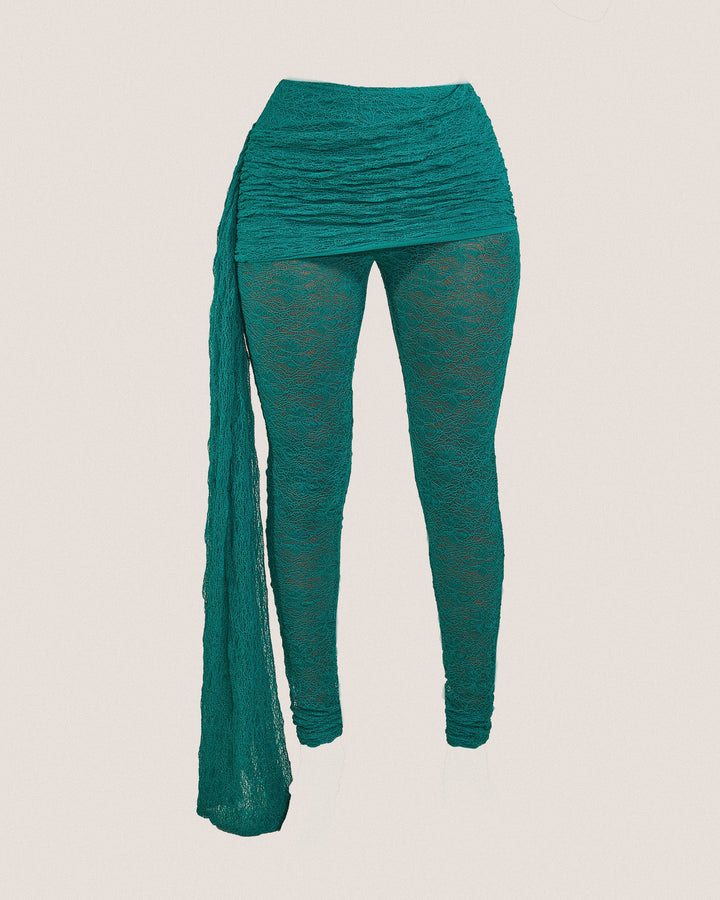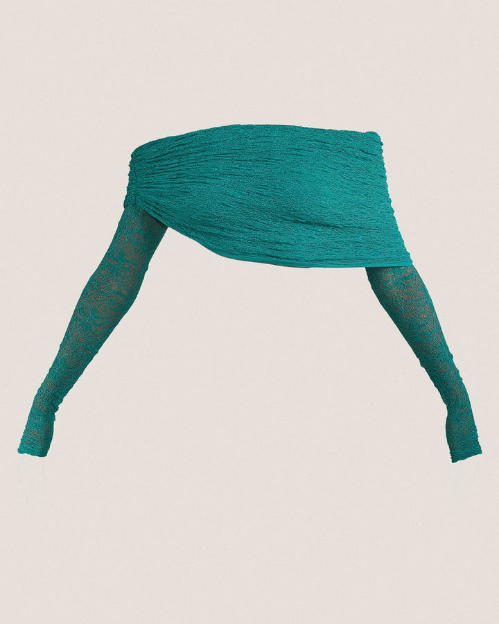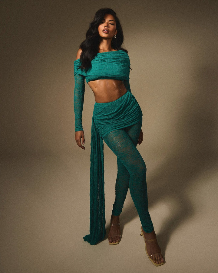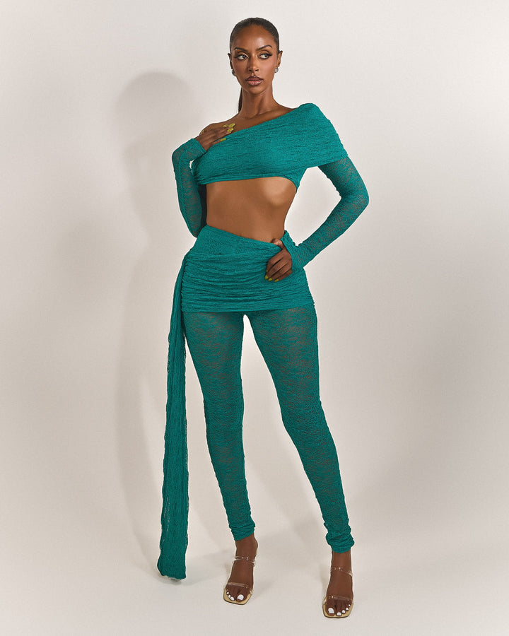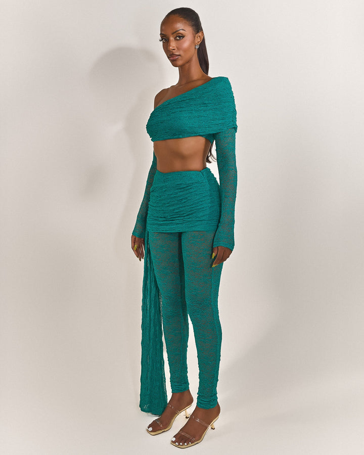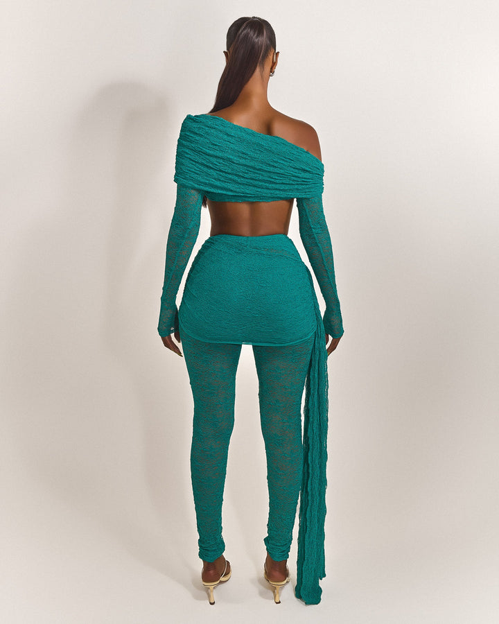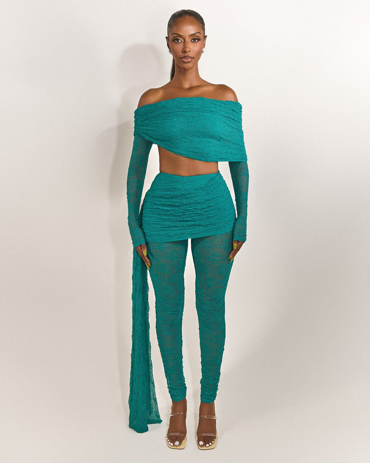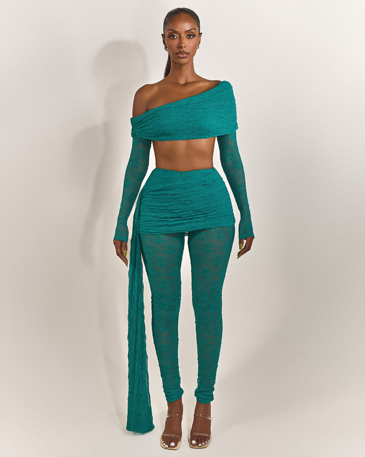 - Premium teal lace fabric two piece set