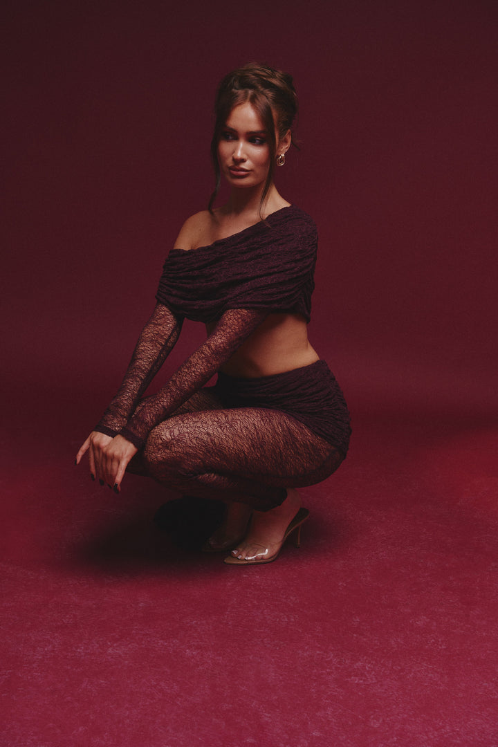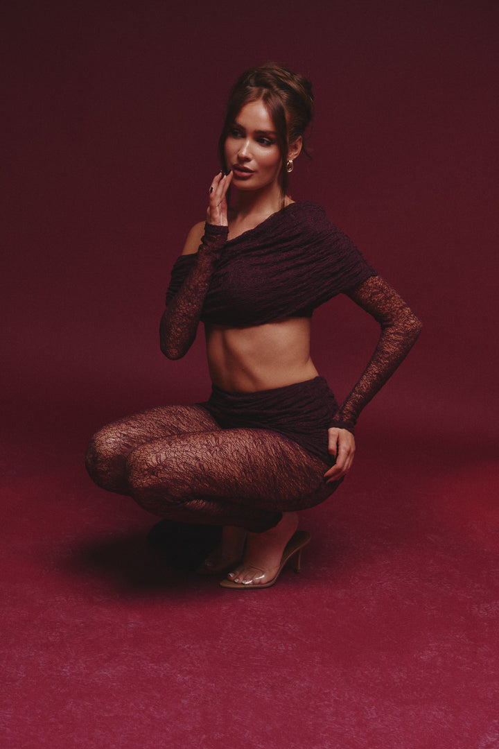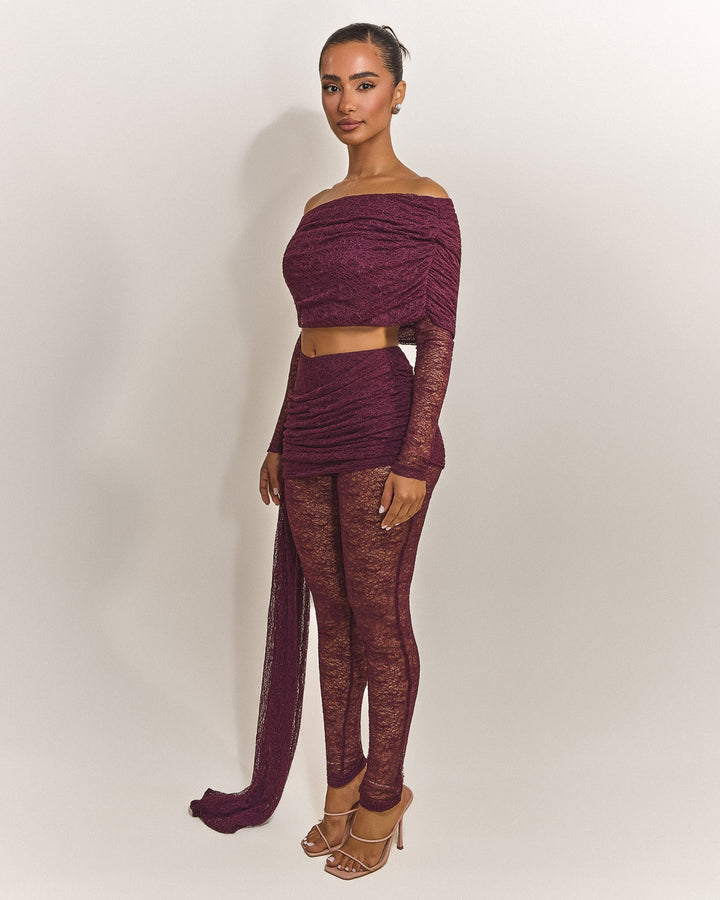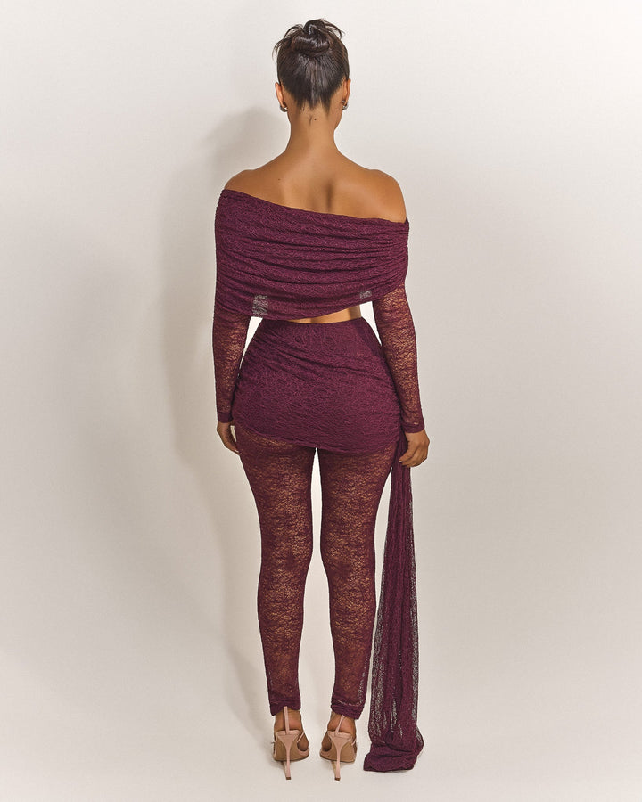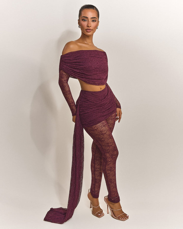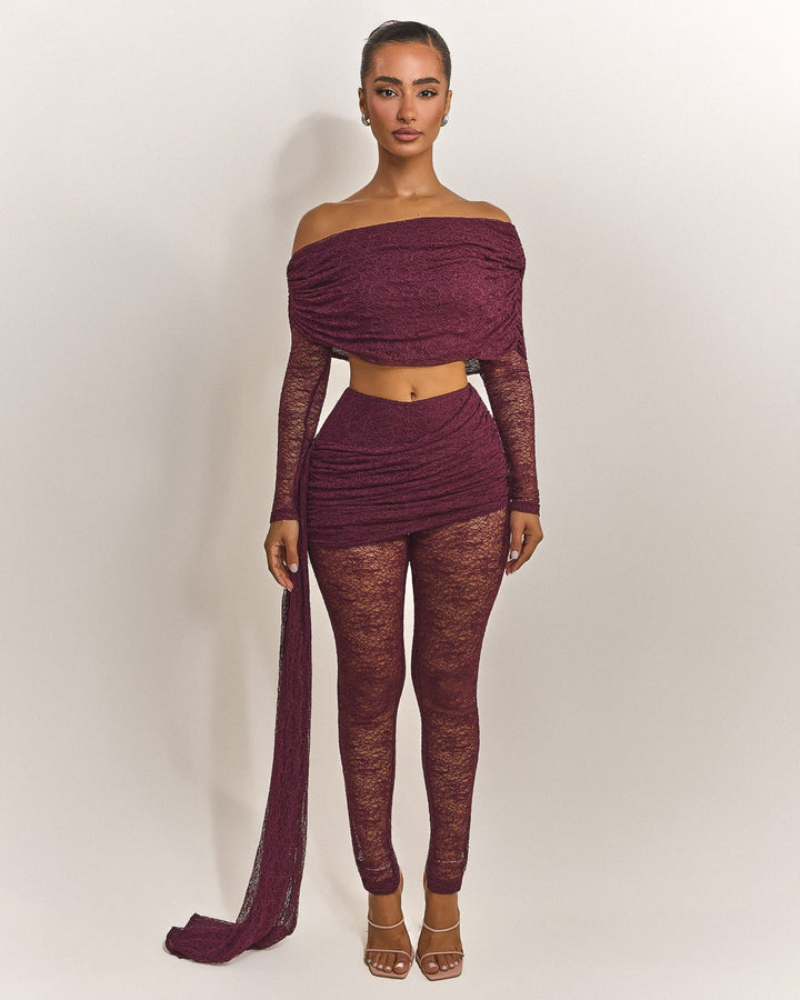 - Premium wine lace fabric two piece set