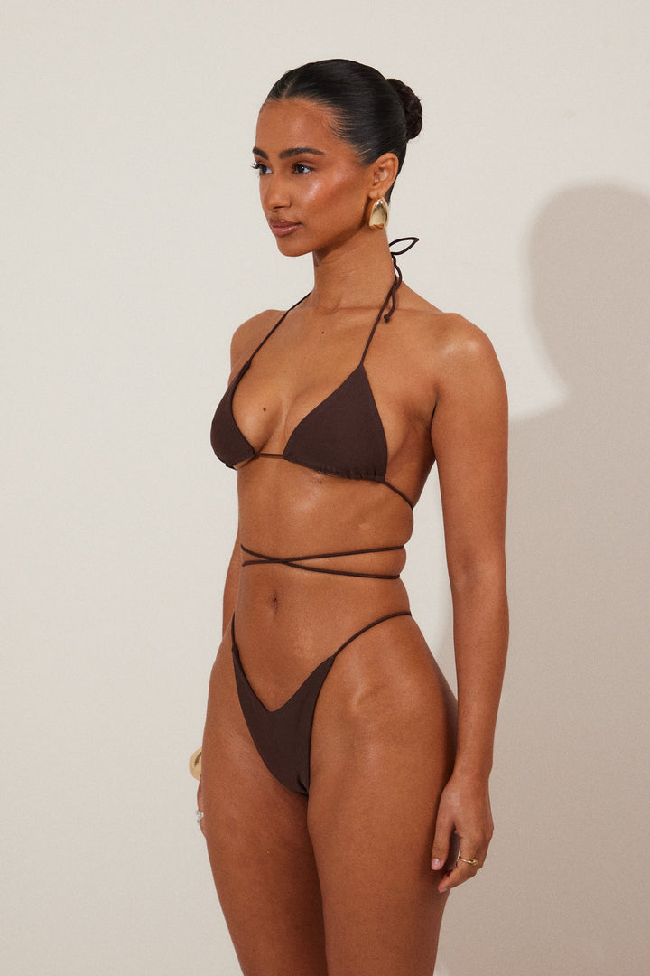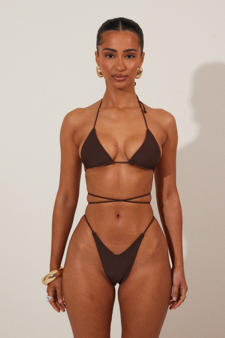 Our teeny bikini has got an upgrade and is now in a hot new brown: