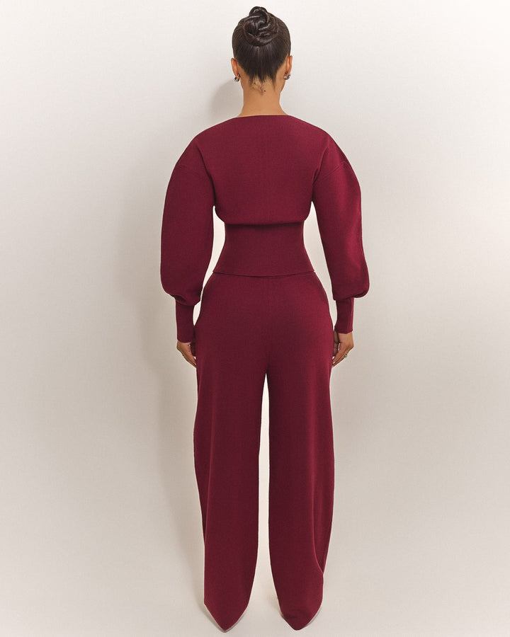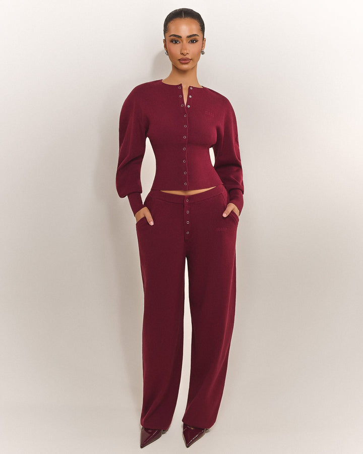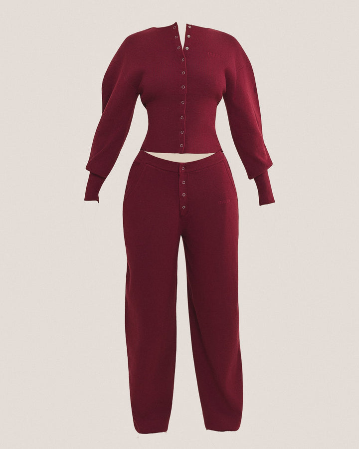 The Mars Knit Set - Button Cardigan in Burgundy
