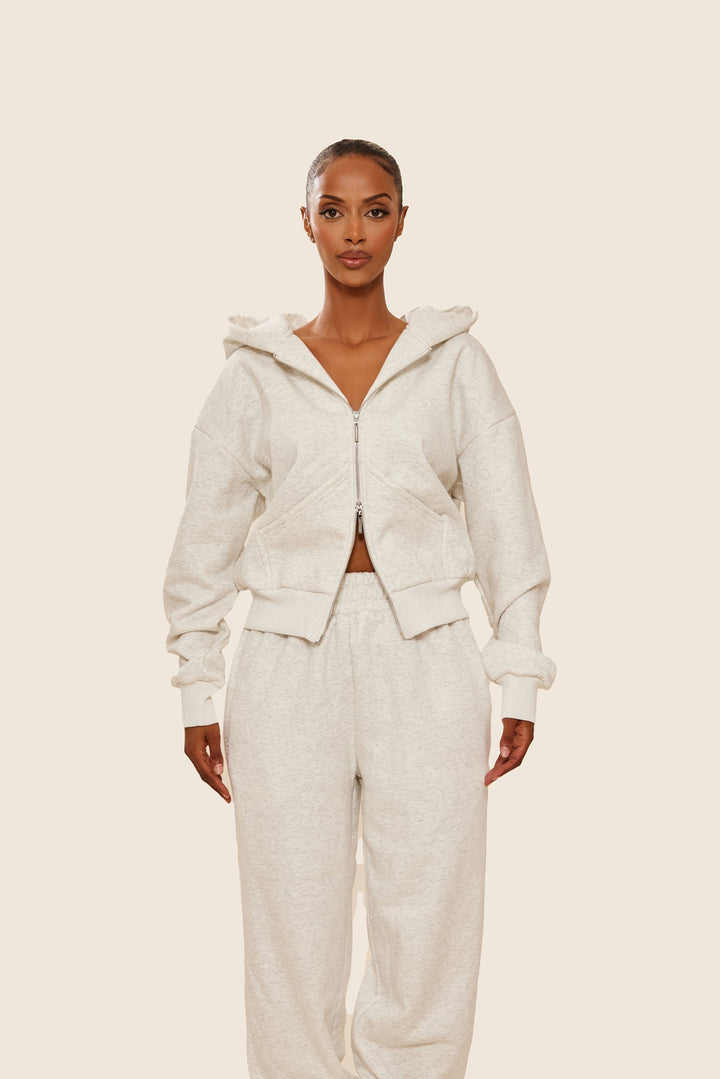 Model is 5"8 and wears a SMALL. Fits slightly oversized.
