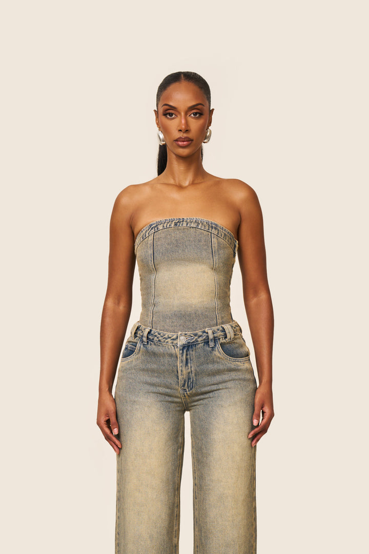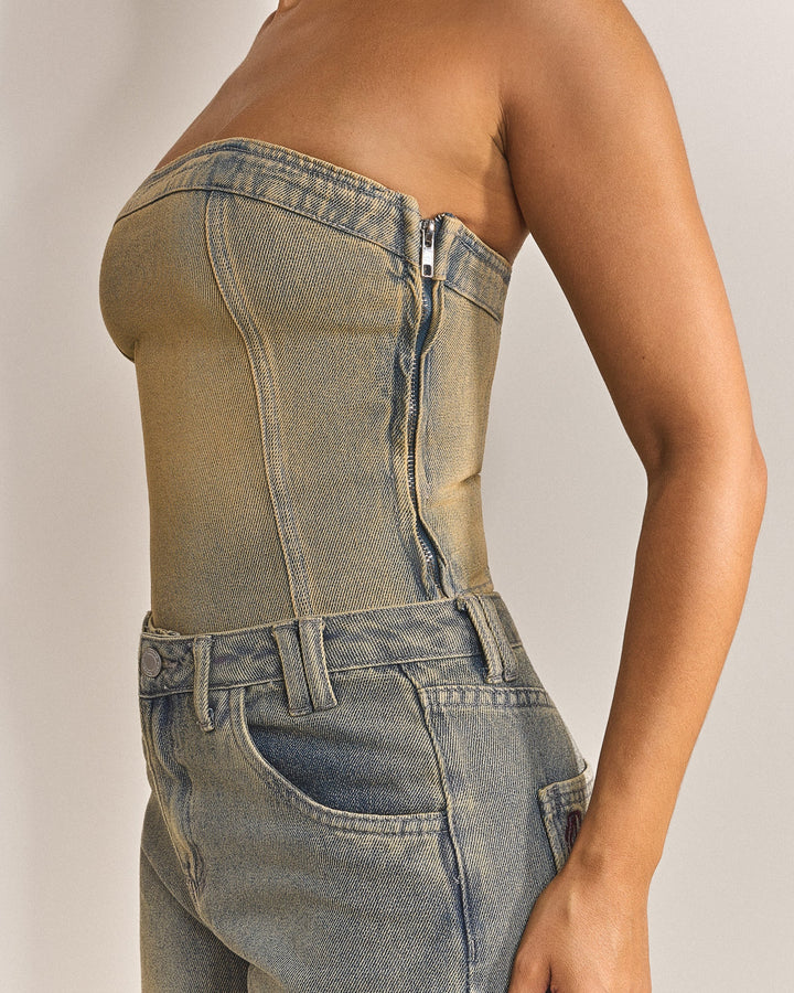 - Vintage wash denim corset