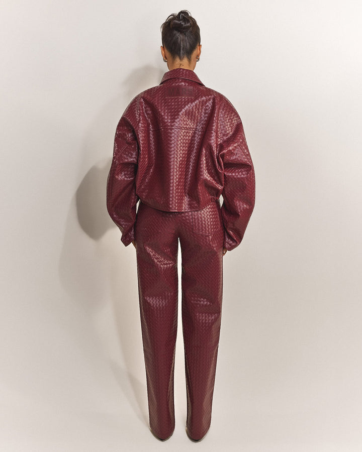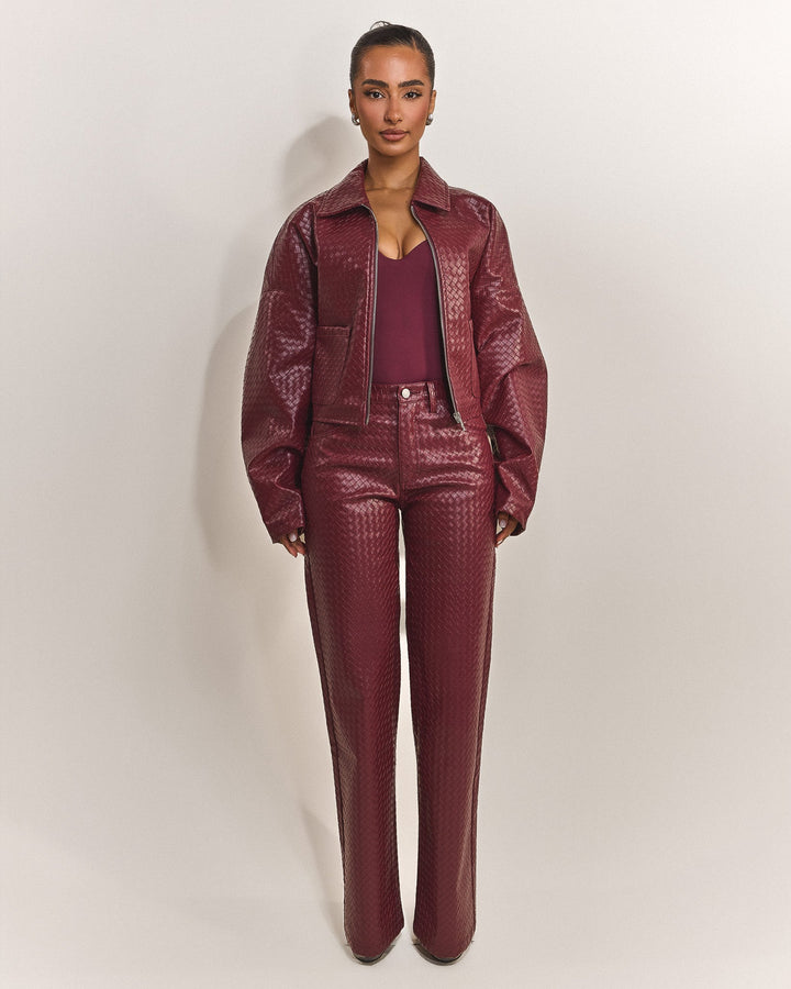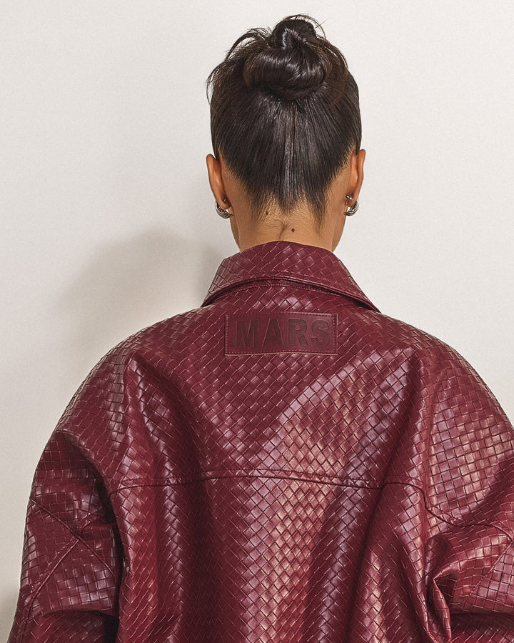 - Premium woven faux leather jacket