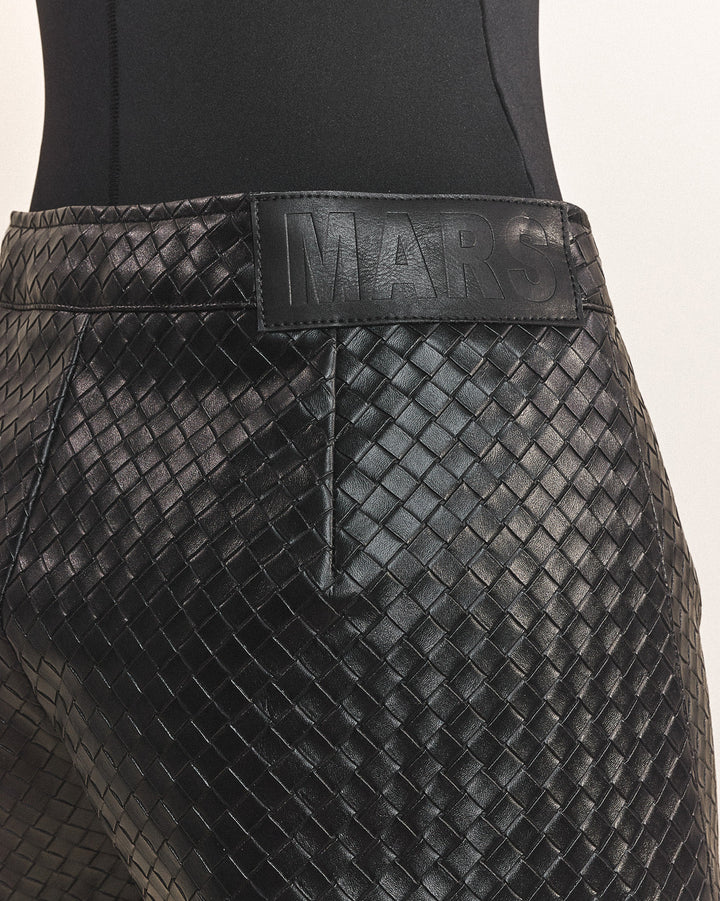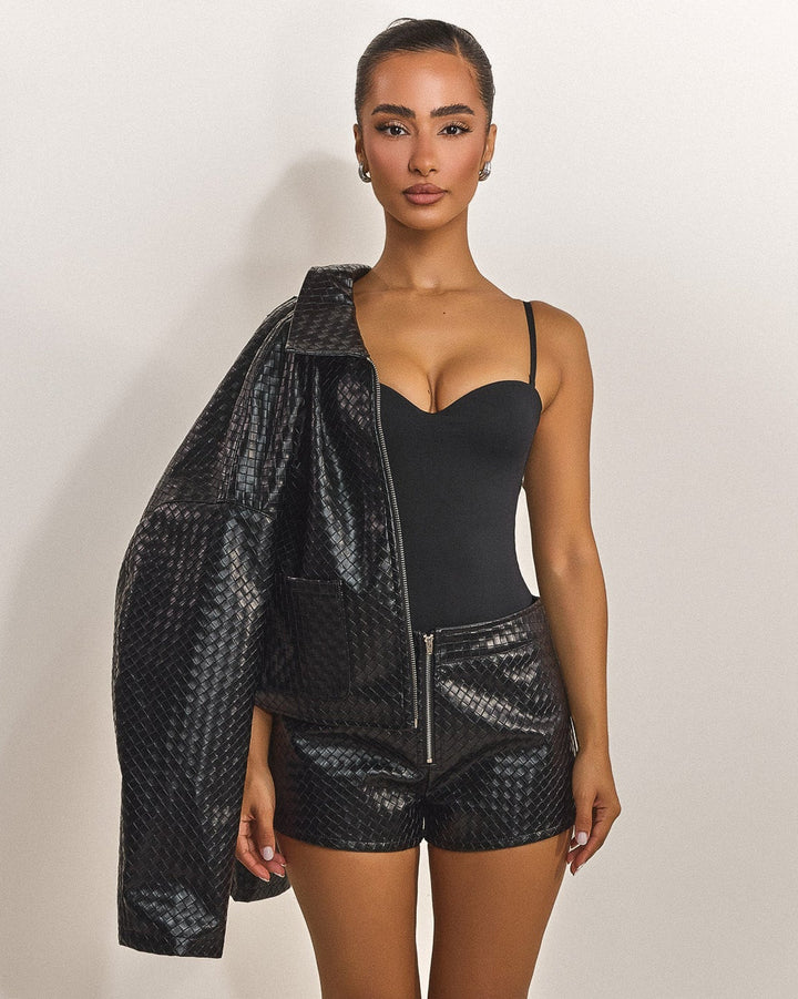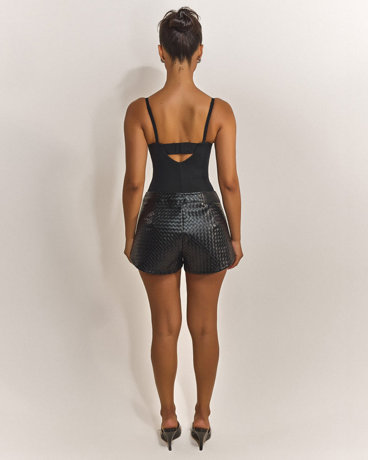 - Premium woven faux leather shorts